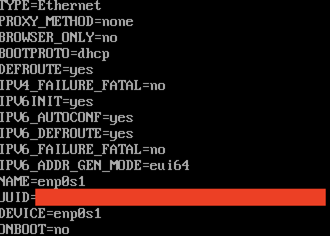 ONBOOT 의 값을 변경(no -> on) 후 :wq 로 vi 종료